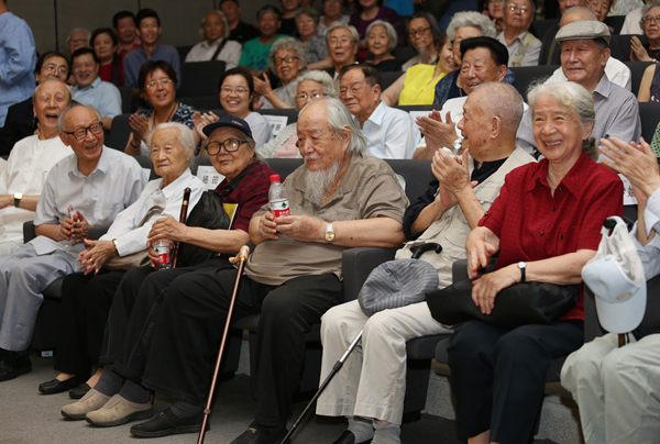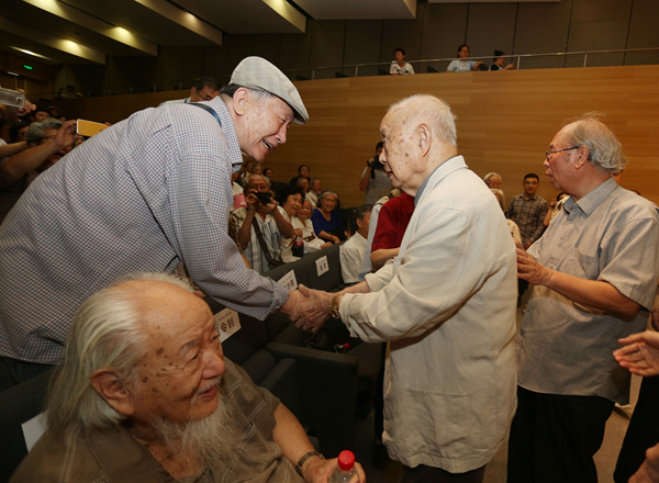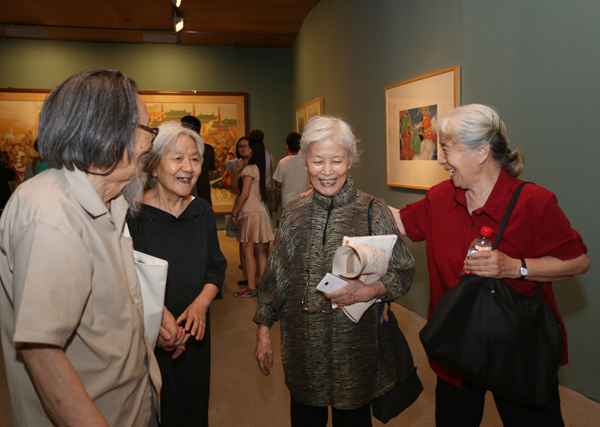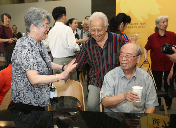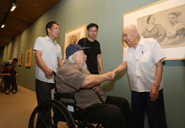 已是耄耋之年的老同学久别相逢,多年不见的师生热切交谈,老朋友见面热情相拥……90岁老艺术家展览的开幕式,一时间成了美院人的大聚会;开幕式上,院长范迪安的讲话,学生代表、学术委员会主任徐冰的发言,王炜代表父亲、伍先生师长王琦先生的贺辞,以及伍必端先生本人激情的回忆与分享,深情而又真切的回忆、叙述带领大家回到了历史场域,一时间又使开幕式现场成了美院人共叙优秀传统的大课堂。