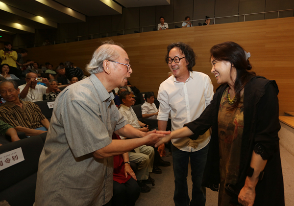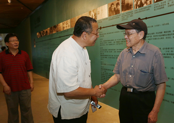 徐冰作为伍必端先生的学生代表在开幕式上发言,真诚地谈到了自己向伍先生学习艺术的感受。“从伍必端先生的经验中,我深深地感觉到艺术家的创造力不来自于自己的IQ水平,而来自于你是否懂得吸纳社会能量”,伍先生的作品总是与民族、与国家伟大的事业紧紧联系在一起,始终跟随这个时代的变化,而不是关注自己的艺术本身。徐冰感受到的是,伍必端先生的个人经历和他的性格都反映在每一件作品的每一个笔触中,他正直、善良,对生活、对艺术有激情,对创作、对艺术的探索一直保有虔诚的心态,“艺术家是作为艺术现场和艺术作品之间的传导体,这个传导体的质量决定了他的艺术作品的质量。我们可以从中看到伍先生作品的质量来源”,他们这一代艺术家的心态、境界是最值得我们学习的地方。