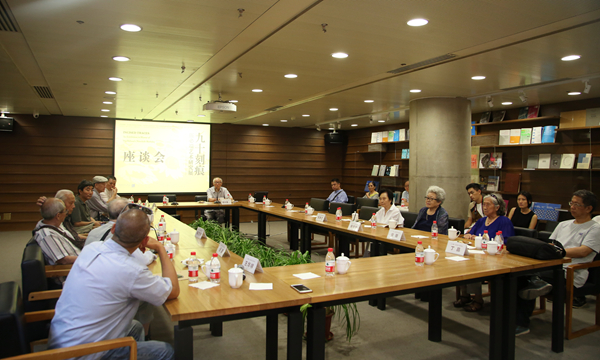 开幕式当天下午,举办了老中青艺术家及学生参加的“九十刻痕——伍必端艺术研究展”座谈会。