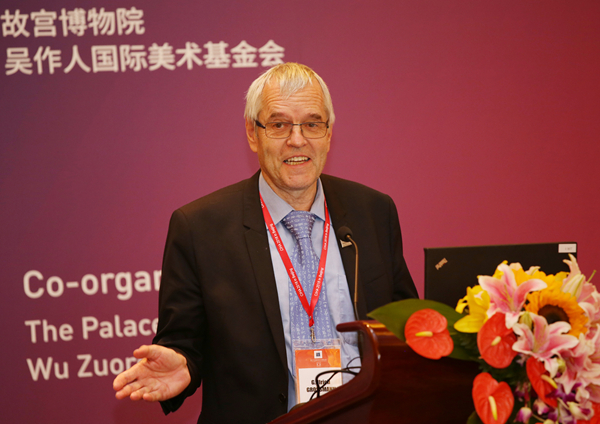 德国国家博物馆馆长、班贝格大学艺术史系教授Georg Ulrich Grossmann随后致辞。Grossmann介绍说,这次世界艺术史大会第一次在此“非西方”国家召开,也是第一次在很大程度上没有受到欧洲影响的中国召开。他称赞了本次大会的主题“不同历史和不同文化中的艺术和艺术史”。在往年的大会进程中,也有专家学者在发言中涉及到类似的议题。他以自己主攻的建筑艺术史为例,分析了在世界不同地区艺术和艺术史的多样化,以及在历史上现代,不同文明之间艺术的交流和相互融合。他认为,艺术和艺术史对于社会的发展、对于青年学生的成长、对于改善人类生存环境也有非常重要的意义。他很期待在这样的主题下,和大家相互交流,打造艺术和艺术是交流的桥梁和不同文化背景的转接学者的沟通。致辞最后,他对中国世界艺术史大会筹委会和各参会学者表示感谢。
