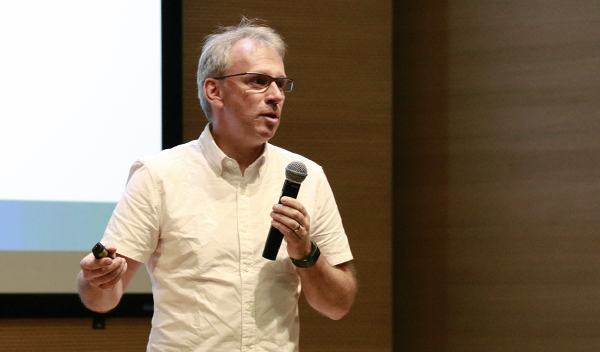 国际奥委会(IOC)形象景观负责人崔德瑞克·戴特卫勒(Cédric Dätwyler)强调了他所提倡的“每个人的奥林匹克”概念,介绍奥林匹克品牌在传播与推广方面的实际工作。