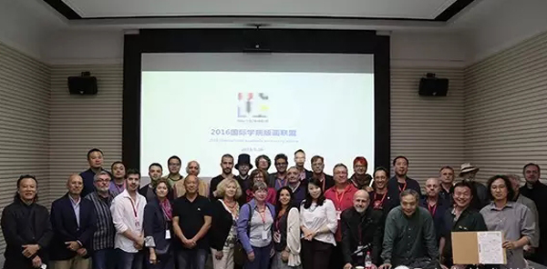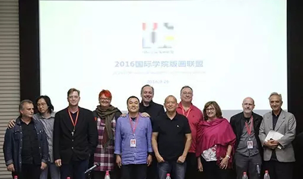 “国际学院版画联盟”成立大会暨学术研讨会也在9月25日、26日同期召开,包括全球五大洲28个国家和地区的31位国际知名的艺术家及大学教授在内,共60位国内外代表参加了本次活动的学术研讨会,围绕当前各国家和地区版画面临的问题、版画的教育和教学、版画的市场与收藏、版画的媒介性与现代科技发展的关系等当前版画界共同关注的问题,展开了活跃的学术交流。