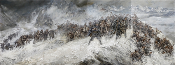 《翻越雪山》王颖生 董卓 中国画(综合材料)300x800cm 2016年