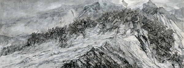 此次大规模的主题性美术创作,是深入贯彻落实习近平总书记系列讲话精神,特别是文艺工作座谈会上的重要讲话精神,繁荣和发展社会主义文艺,增强民族文化自信,催生主旋律美术精品创作的一项重要举措。几乎每一组创作团队都试图通过重走长征路,追寻长征遗存、考证史料、现场写生、搜集素材等行动,去身临其境地体悟长征精神,大量手稿、影像、文字,记录了他们克服困难、全情投入、精心打磨、潜心创作的历程。这本身就是当代美术家传承长征精神的体现。