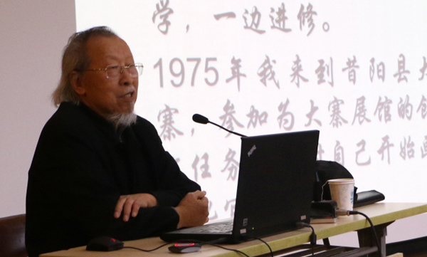 苏高礼先生将写生创作分为两个部分,第一部分从1975年到家乡平定和昔阳大寨的写生讲起,为大家呈现出了六七十年代农村整体的精神面貌。第二部分以1978年敦煌考察开篇,讲述了他在祖国大江南北更富风情的创作过程,大量珍贵画作在这段时间完成,既有朴实无华的人物肖像,又有壮阔恢弘的山水景色。苏高礼先生反复强调农村写生的重要性,他善于利用西方油画的技法表现中国传统的色彩,从广大农村中汲取能量,寻找创作灵感,他希望同学们能够重视写生和临摹。