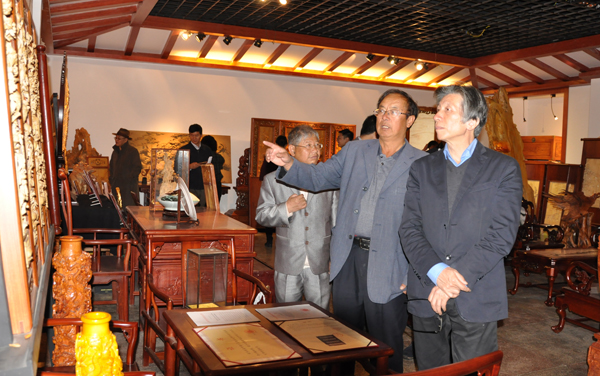 范迪安院长与杨宁书记等参观参观剑川兴艺古典木雕家具厂