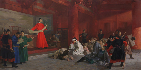 《唐律疏议》与官衙断案-丁一林-油画