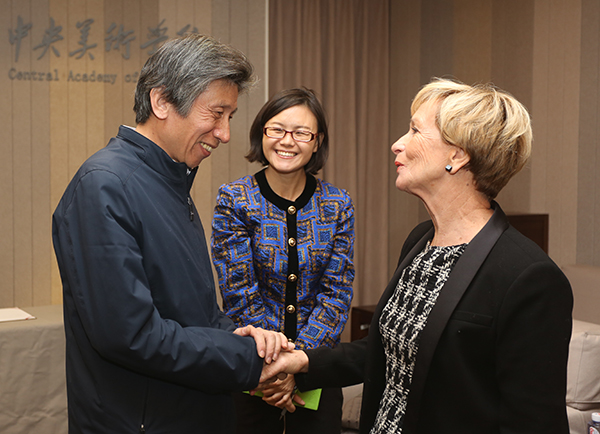 院长助理兼教务处长王晓琳、国际合作与交流处处长徐佳、造型学院书记兼修复研究院院长王颖生、协同创新办公室主任岳洁琼、造型学院党总支副书记陈晔等陪同会见。