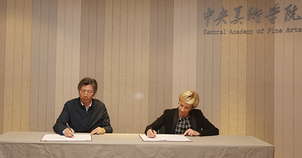 范迪安院长与安娜-马莉·德仙娜-道尔夫副市长代表两校共同签署