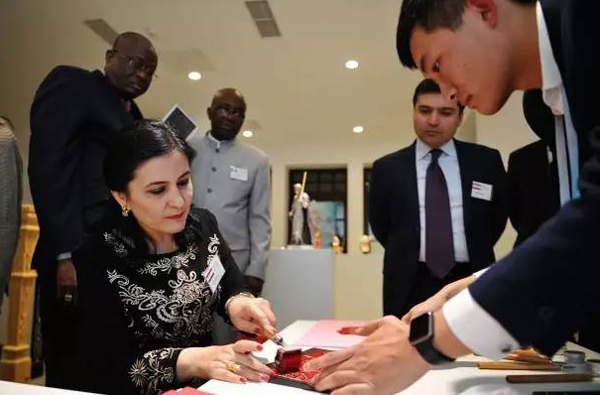 此次活动的亮点除了展览作品的新意之外,我们还在现场提供了“艺术微体验”的环节,也吸引了众多驻华使节的热情参与,通过创客的指导,使节们近距离感受中国传统木刻版画、古老造纸术等这些具有中国传统文化魅力的艺术新体验,感受“旧艺新传”之美。