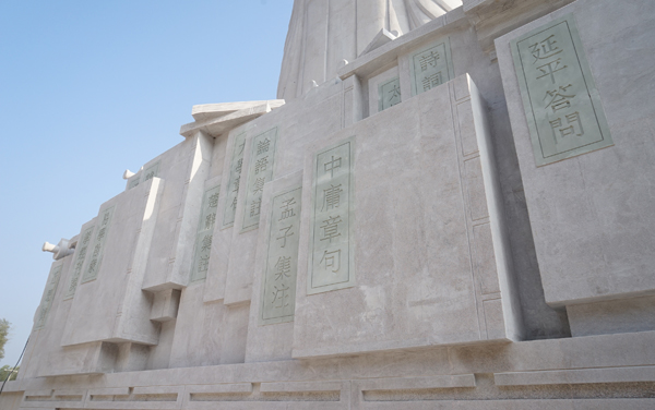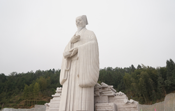 “半亩方塘一鉴开,天光云影共徘徊。问渠那得清如许?为有源头活水来。”吕品昌表示,朱子雕像创作围绕“源头活水”展开。朱子雕像是朱子文化园的主体,背靠群山,周边地势平坦开阔,雕像尺度以周边自然环境为参照,立意“远目可及,近观能赏”。“远目可及”指的是地标性和方向感,即来访者一下高速路就能在广袤的自然区域中看到雕像和五夫镇所在地;“近观能赏”即除了体现雕像造像本身的艺术性和审美感外,还要具有纪念性和仪式感。以上要求和目的,是一般城市空间中的雕塑尺度难以企及的。