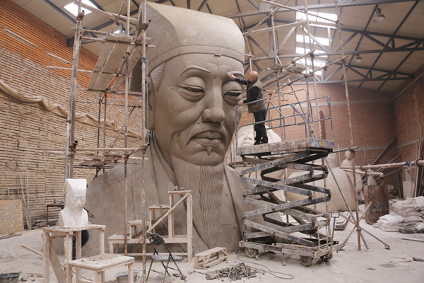 吕品昌教授在创作朱子雕像