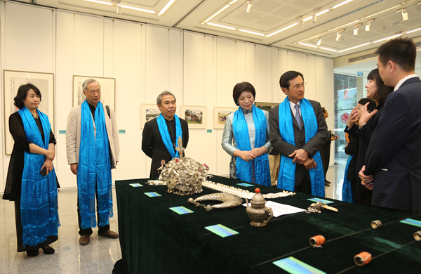 开幕式最后,由北京市对外文化交流协会原副会长王慧宣布展览开幕,与会嘉宾共同为展览剪彩。