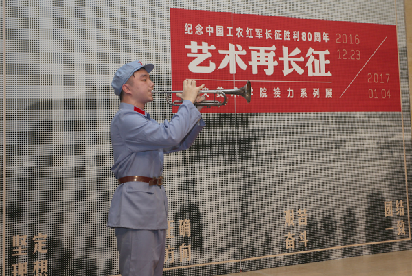 一曲嘹亮的军号响起,历时一年创作的“接力系列展·艺术再长征”吹响了集结号。为纪念中国工农红军长征胜利80周年,“Ky开元集团接力系列展·艺术再长征”于12月23日在中国美术馆拉开帷幕。展览集结了中央美院各专业院系创作力量,产生了百余件围绕长征历史题材的新作,以丰富的形式、新颖的面貌体现出当代美院人对长征主题的艺术表现,在重大主题创作上新的学术理想和文化追求。