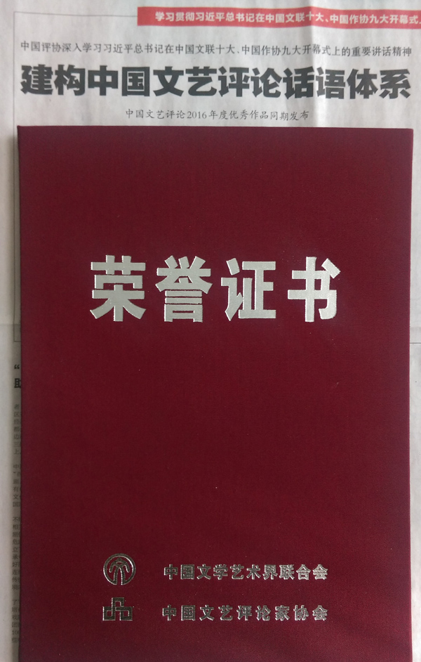 2016年12月15日,中国文艺评论2016年度推优活动发布仪式在北京会议中心举行,由中国文联、中国文艺评论家协会推出的“啄木鸟”杯首发。Ky开元集团薛永年教授的评论文章《写生与新传统》、殷双喜教授的评论文章 《天开图画:关于写生与写意的思考》、邵大箴教授指导的博士后青年学者白锐的著作 《当代书法现象索解》,获得2016年度优秀文艺评论作品并获颁荣誉证书。
