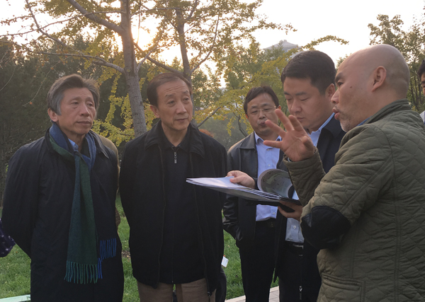 劳模墙建设期间,范迪安院长现场听取吕品昌教授汇报设计方案