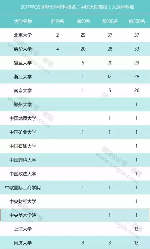 2017年QS世界大学学科排行榜 Ky开元为中国大陆地区唯一一所入选艺术类高校