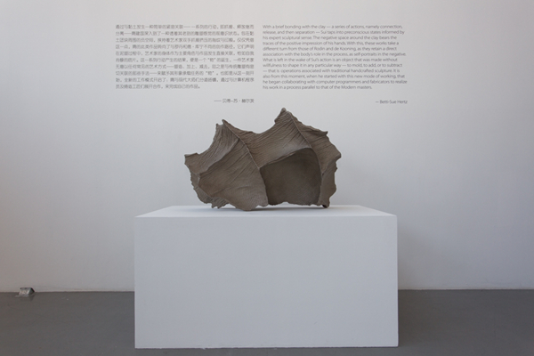 早期制作如《盲人肖像》系列等作品,隋建国试图运用人工的后期处理手法呈现雕塑层面上的机理效果,而如何能够彻底而全面的还原手与黏土互相“触碰”的那种受力瞬间,一直艺术家在创造表达上悬而未决的问题。本次展览隋建国运用了高精密度的3D扫描技术及3D打印技术,精确捕捉并还原了作品表面的手纹细节,使得雕塑作品的表面肌理达到了前所未有的细腻程度。“这种精确带来的突破并非仅仅是技术上的,更是对艺术家美学理想的逐步靠近——以高科技处理生成的作品如科学实验般精确记录下材料的特性与受力结果,将前一阶段作品中仍旧相切于抽象表现主义的造型手法边缘的艺术观念,彻底推进到对于雕塑身体性本质的客观揭示。”对于本次与技术的结合,隋建国表示,“这使得我的身体更加深入到材料里面去。”