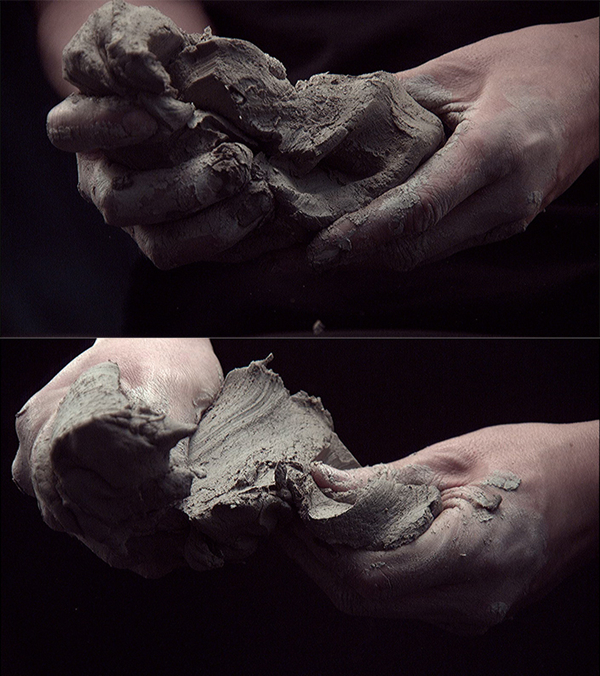 通过艺术家手中的简单动作——抓握、捏造、挤压、分离、扭转,艺术家的双手与黏土产生了最直接而深刻的紧密接触,同步展出的录像作品《肉身成道》详细地记录下了这一瞬间画面,贝蒂-苏·赫尔茨称其为“深入到了一种透着其老道的雕塑感觉的前意识状态”。在黏土表面留下的指纹与印记似乎阐明了艺术家身体(双手)的不在场,与此相对,黏土所呈现的各种凹陷、扭曲,构建了“不在场的身体”的负空间存在,就此即昭示着属于身体的那种强势的、不可否认的存在感。在展厅幕墙上持续进行着视频中“创作”的手,填补了雕塑外部凹陷出的时空空缺,将二者合并为一个完整的现场。艺术家的手与黏土发生关系,黏土柔软的特性与手的受力产生了碰撞,从此一个雕塑就此诞生。在隋建国看来,所谓的做雕塑往往在于手和泥互动的结果,可关键的核心更在于“第一下的触碰”——第一下的接触预示着生命特征的“物”的诞生,好比米开朗琪罗创世纪中上帝与亚当的指尖相触的瞬间。