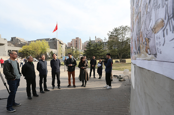 壁画系李洋老师是此次主题壁画的主创者,在开画现场,他谈到能够描绘百年历史心情特别激动,“美院人最擅长的就是画画,我希望全院的同学们都拿起画笔,参与到绘制百年校史中,和我一起用画笔进入历史的现场,向美院和大师致敬。”