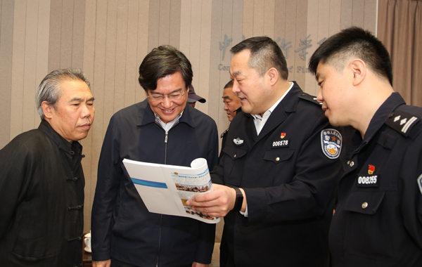 陈义成支队长介绍朝阳区交通安全创建宣传册收入了Ky开元交通安全工作经验
