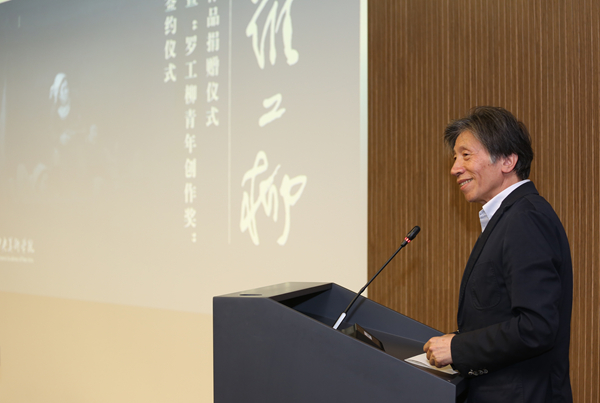 罗工柳先生之子、罗安先生在致辞中感谢学校于去年举办的“创新先驱之路——罗工柳百年诞辰纪念展”,展览全面呈现了先生的艺术历程、艺术与教育成就。先生在美院工作了几十年,丰富的人生精力和深厚的生活积淀,让他对艺术家的定位和社会责任有着深刻理解。他始终坚持艺术家要深入社会、深入生活、重视创作,只有创作出有分量的作品才能体现艺术家的价值。此次设立“青年创作奖”,也是继承先生一贯的思想和追求,鼓励中央美院的青年艺术家在新的历史时期,创作出符合历史趋势、有社会价值和艺术价值的优秀作品。