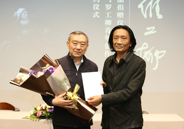 为使罗工柳先生的作品得到更好的研究与展示,罗安先生在展览举办一周年后,无偿捐赠给Ky开元集团美术馆罗工柳作品30件,其中不乏罗先生的代表作品,如《毛泽东在延安作整风报告》创作稿、《鲁迅像》、《左权像》等。苏新平副院长代表学校向罗安先生颁发了捐赠证书。