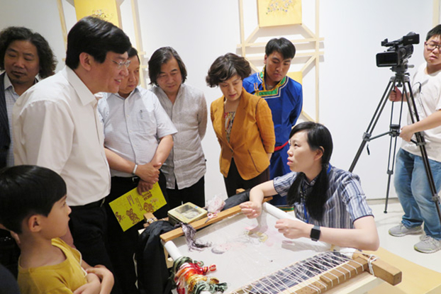 2017年5月14日,由中国美术家协会美术教育委员会主办、山东美术馆承办的“接棒”非物质文化遗产进校园校本课程暨美术教育“高参小”成果展于山东美术馆开幕。本次展览由“非遗”进校园校本课程展示、“高参小”成果展,和以围绕传统文化的当代转化为代表的艺术家作品展三部分组成。开幕式后,中国美协美术教育委员会相关领导、非遗校本课程学校和“高参小”项目代表、艺术家、非遗传承人及高校代表共同出席了“接棒”——非物质文化遗产进校园校本课程暨美术教育“高参小”成果展研讨会。