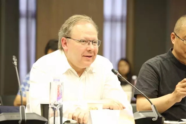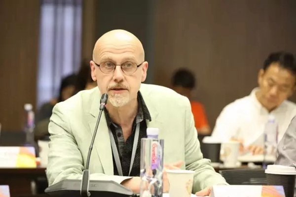 芝加哥艺术学院教育技术与创新中心副教务长艾伦·赖博教授说“我认为这个央美是非常棒的一个学院,虽然我只来了两天,但是我认为完全能够看到我们央美的深厚的历史传统,我们有着非常棒的师资队伍,还有非常有才华的学生,昨天我在美术馆看到一件非常有意思的艺术作品,这个作品突破了这个传统,它具有前瞻性,结合了历史和现状,以及未来,我想这这个艺术作品的作者,一定有着非常的深厚历史知识,同样他也有现代的这样一个前瞻性。”