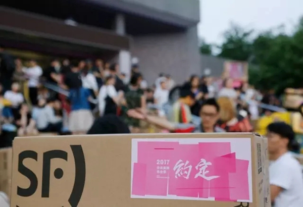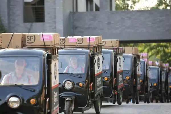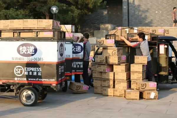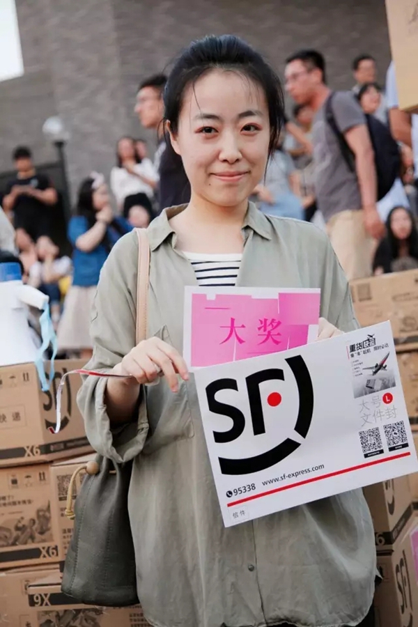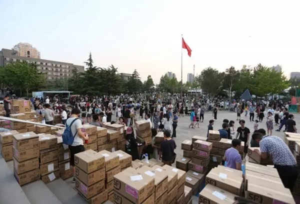 下午四点,10辆满载快递纸箱的顺丰快递三轮车驶入校门。两个小时后,“瓜田”旁边的台阶上顺丰快递箱堆成小山。
