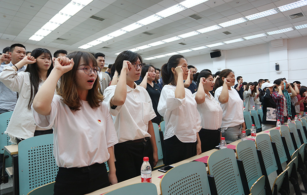 新党员面对党旗庄严宣誓,全体老党员重温了入党誓词。大会在雄壮的《国际歌》中结束。