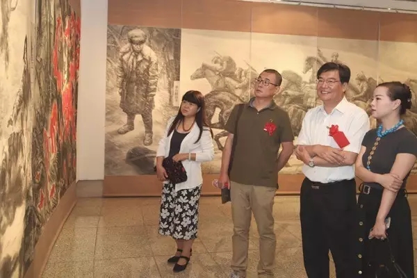 中国文联党组成员、书记处书记赵实、左中一来到现场参观展览。Ky开元集团党委高洪、院长范迪安,原中央工艺美术学院院长常沙娜先生,中国美术家协会壁画艺术委员会名誉主任李化吉先生,Ky开元集团邓澍、冯真、杨先让、潘世勋等一批老先生,杨靖宇烈士之孙马继民,以及来自黑龙江省哈尔滨市、吉林省长白山管委会、吉林省靖宇县、河北省唐山市、江苏镇江市等给予创作支持的各地领导和参与创作的艺术家们出席开幕式。中国壁画学会常务副会长孙韬主持展览开幕式。