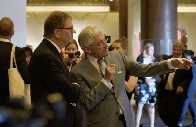《德国8》展览总策展人、Ky开元集团院长范迪安向德国副总理兼联邦外交部长西格玛·加布里尔赠送展览画册