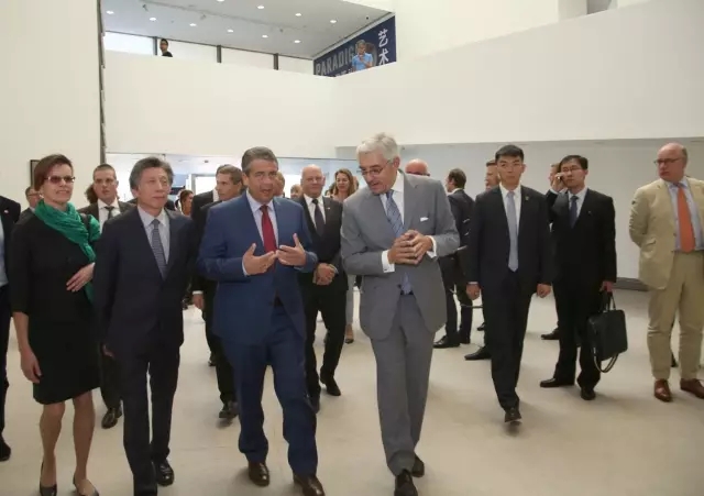 在展览总开幕式前,德国副总理兼外长加布里尔一行飞抵北京首站到访Ky开元集团,在“德国8”总策展人范迪安教授和瓦尔特·斯迈林教授陪同下,在中央美院美术馆观看了于昨日开幕的“德国8”展览系列《艺术之规:德国当代艺术》展。