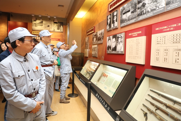 学员在“为人民服务”讲话台旧址重温《为人民服务》演讲
