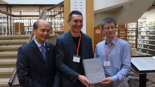 在中国驻旧金山总领事罗林泉的见证下,肖勇向斯坦福大学东亚图书馆捐赠了《2016中央美院作品集》。