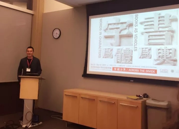 当日下午在斯坦福东亚图书馆学术报告厅举行的学术会议,斯坦福大学教授谢晓泽、中央美院教授肖勇、著名评论家Jeff等专家分别从艺术创作和设计的角度,讲述自己的艺术创作与文字和书籍之间的关系。到访的中美两国参展艺术家就各自的艺术创作经历分别发言。