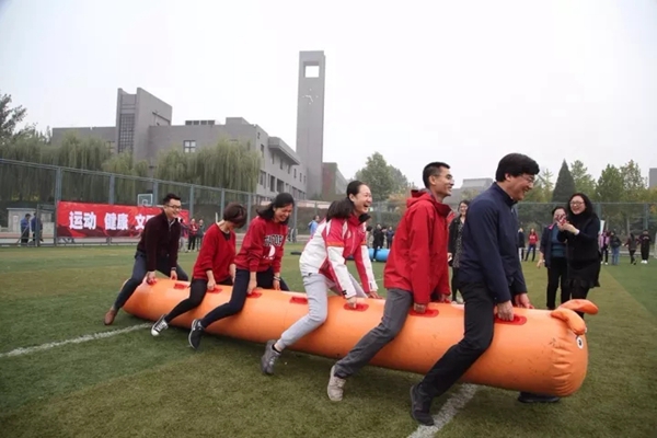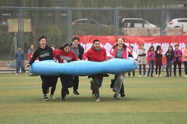 趣味运动会以各二级工会为单位,设置了一分钟跳绳、一分钟踢毽子和“毛毛虫”、“齐心协力”、“运转乾坤”、“同心夹球”等集体项目。集趣味性、娱乐性、协作性和竞争性于一体,既有力量的角逐,又有智慧的较量;既是个人体育竞技水平的展示,也是团队协作能力的检验。运动场上各个项目热闹非凡,或扣人心弦,或趣味盎然。在运动会中,教职员工从紧张繁忙的工作中放松下来,在轻松愉悦的气氛中,身体得到了锻炼,更增进了彼此之间的友谊,增强了合作精神和集体荣誉感。