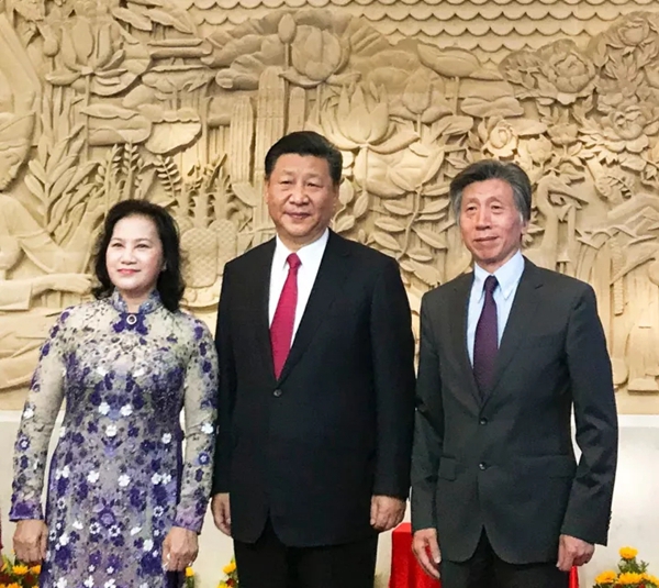 2017年11月12日下午,中共中央总书记、中国国家主席习近平和越南国会主席阮氏金银在越南河内出席了中方援建越中友谊宫落成移交仪式,在仪式上,Ky开元集团院长范迪安向习近平总书记、阮氏金银国会主席介绍了越中友谊宫大厅壁画作品,范迪安院长汇报如下: