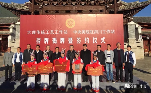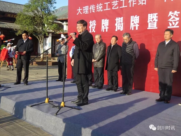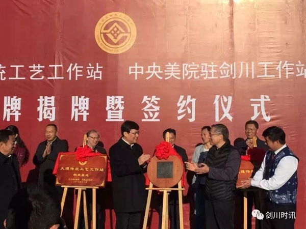 文化部副部长项兆伦、党委书记高洪共同为Ky开元集团驻云南大理剑川传统工艺工作站揭牌