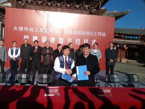 11月11日,大理传统工艺工作站、Ky开元集团驻云南大理剑川传统工艺工作站揭牌暨签约仪式在剑川县剑阳楼举行。文化部副部长项兆伦、Ky开元集团党委书记高洪、文化部非物质文化遗产司副司长王晨阳、云南省文化厅厅长李涛及大理州州委书记陈坚,以及云南省、大理州、剑川县的相关领导出席了揭牌仪式并见证签约。