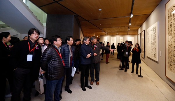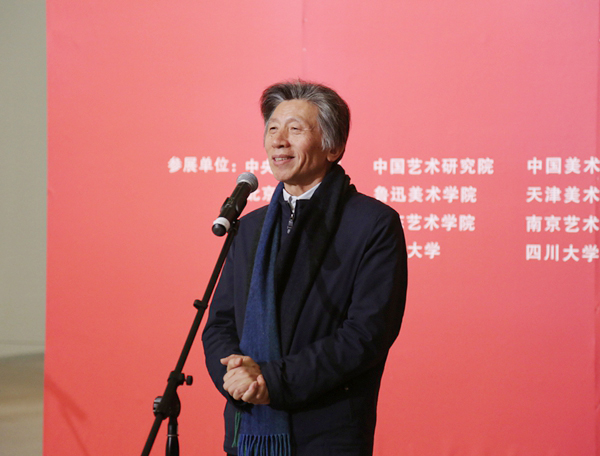 中国画学院副院长刘庆和在致辞中提到,希望参展的各高等院校书法专业教育工作者以展览与研讨会为契机,共同探讨书法艺术在这个大时期、大时代背景下,在多元化学院教学中,如何更好地开展教学实践。