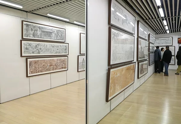 鼎城区委常委、常务副区长李卫民在致辞中说到,“壁画作为一种重要的艺术门类,既古老悠久又紧随时代,见证了世界千百年的文明史,始终表现着时代发展的最强音,此次展览画稿规模庞大、气势恢弘,紧扣时代主旋律,充满爱国情怀,充分反映了人民精神和时代风貌”。