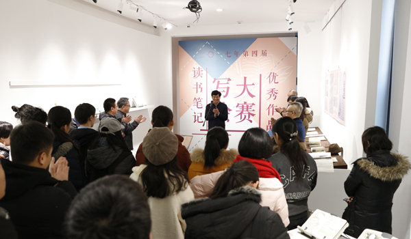“多读书·读好书”是学校党委对同学们提出的殷切期望,高洪书记在致辞中讲到,美院人的格局养成离不开多读书、读好书。要成为十九大报告中说的 “造就一大批德艺双馨的艺术家”也离不开多读书、读经典。高洪勉励同学努力实践读书的两个境界,先从薄到厚即广泛积累,然后由厚变薄即精华提炼,成为我们内涵、内心的部分,把做好读书笔记当成和艺术创作同样重要的呈现形式,并驾齐驱的发展,这样才能飞得更高、飞得更远。