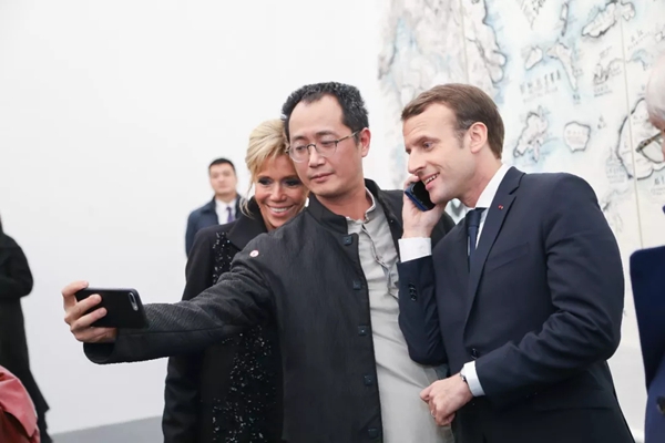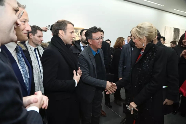 刘小东与马克龙总统及夫人交流