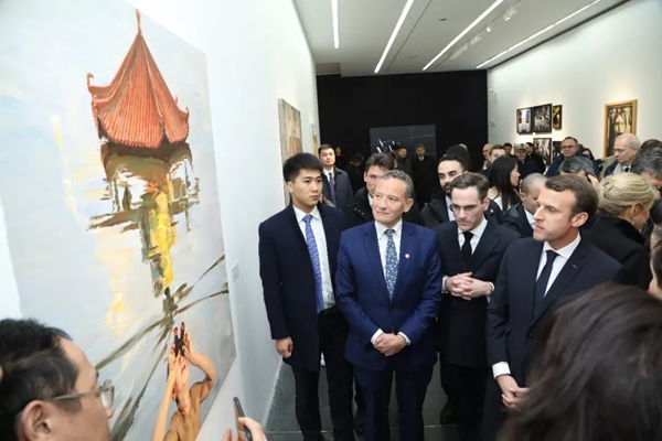 喻红为法国总统马克龙讲解自己的作品《巡视》