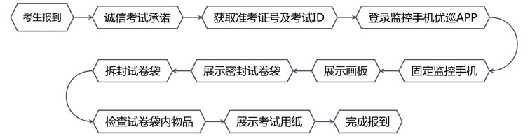 距离考试开始15分钟时开始报到,考试开始后15分钟停止报到。报到流程如下: