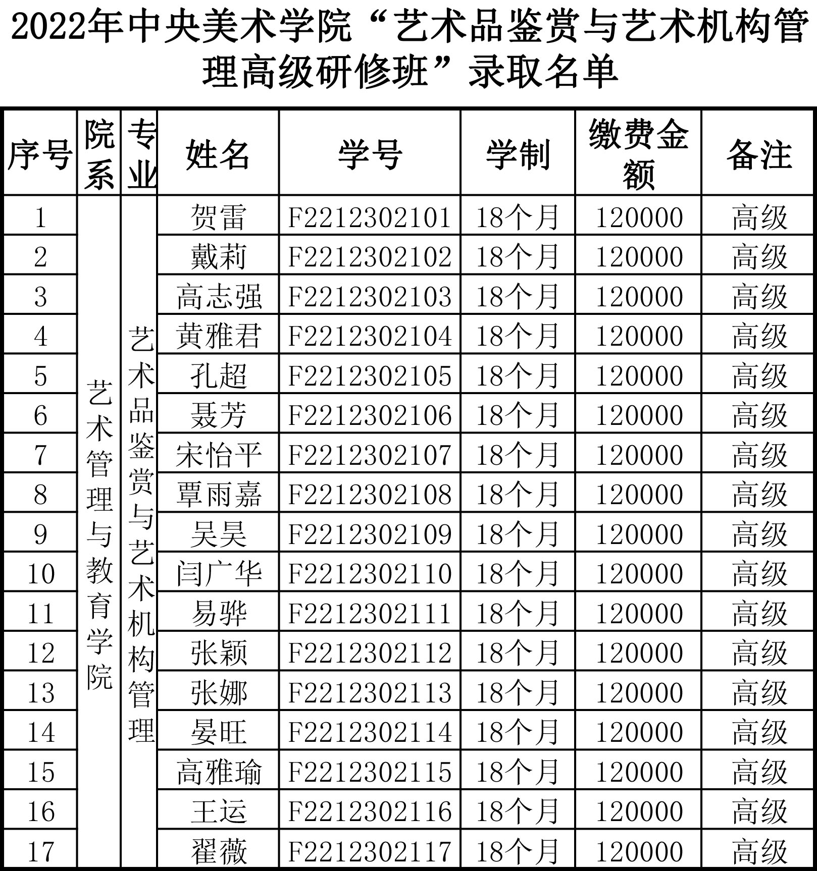 2022年艺术品鉴赏与艺术机构管理高级研修班录取名单