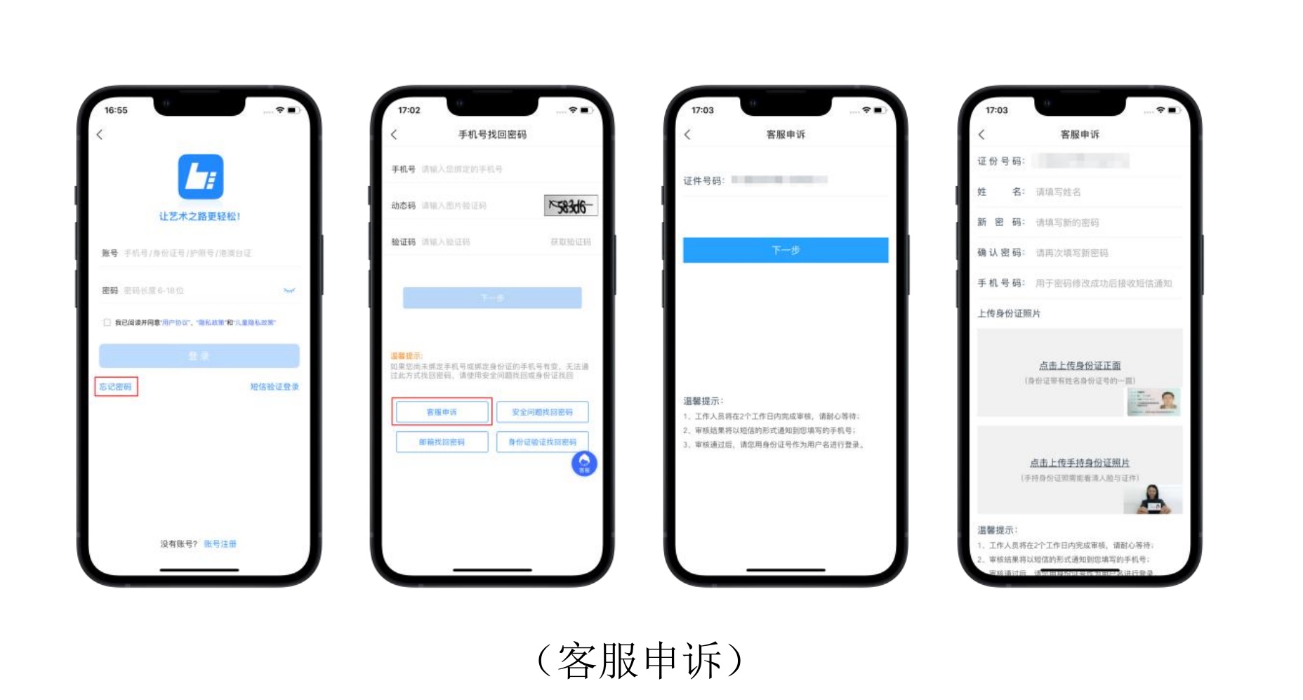 已经注册过“艺术升”账号的考生可直接登录系统进行报名。如果忘记密码,可以通过登录界面的【短信验证】登录,或者通过【忘记密码】-【客服申诉】找回密码。