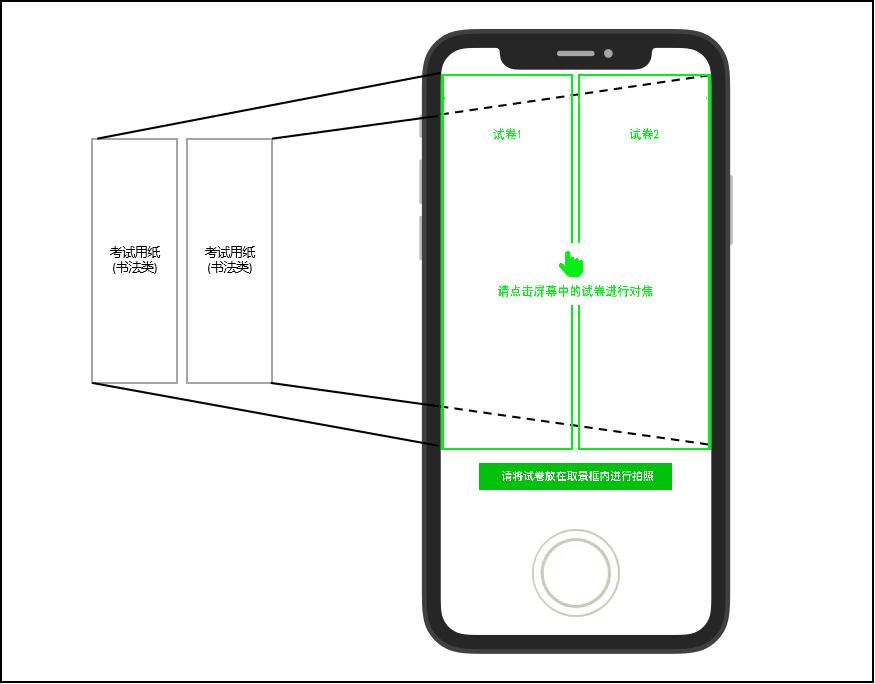 考生手持试卷,面向辅机【优巡】,点击【…】中的【交卷】,点击【拍照】,保持静止不动,10秒钟后自动拍照,确保提交试卷清晰、完整。辅机【优巡】持续保持监控状态,使用吹风机、定画液以及拍摄试卷均须在【优巡】监控下进行。